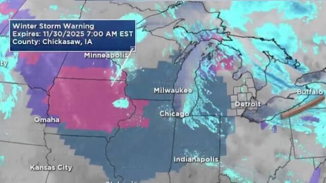 Des avertissements de tempête hivernale apparaissent actuellement dans le Wisconsin et près de Chicago en raison d’une zone de basse pression.